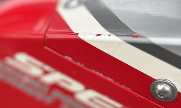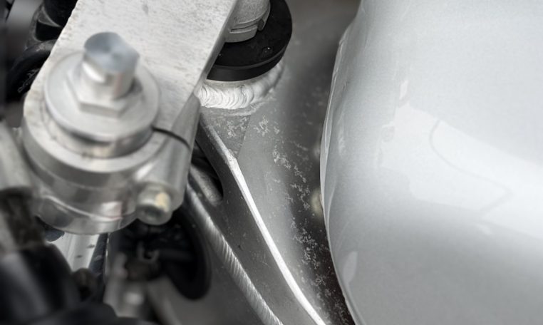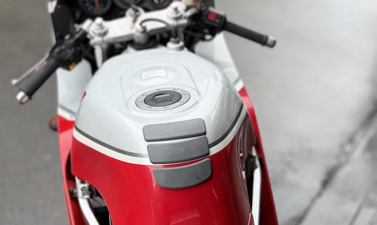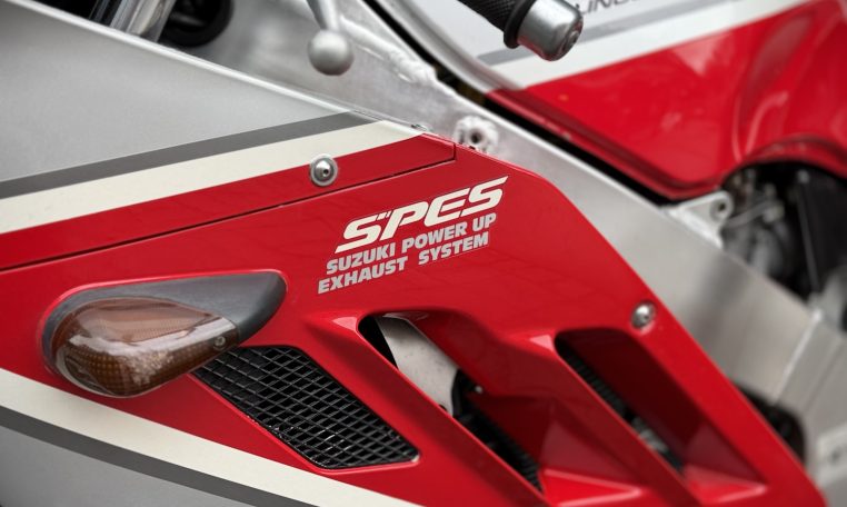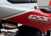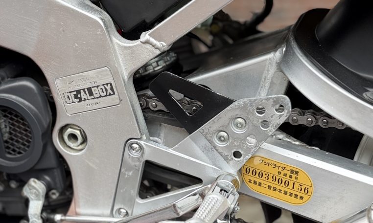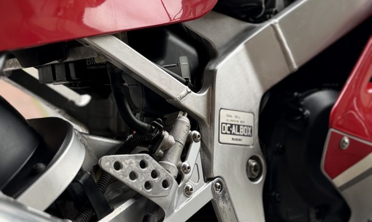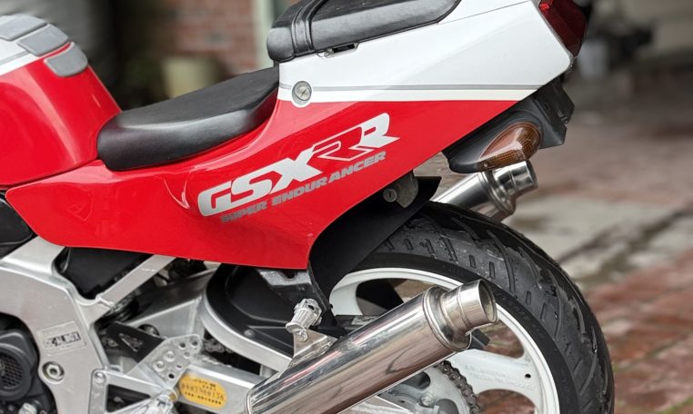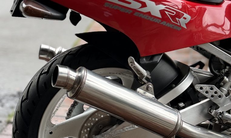 From the unique water oil air cooling to the standard water cooling, a large full model change.However, the fact that water cooling was almost not described in the public relations announcement materials and catalogs at that time is a reason for the merit of air oil water cooling that is emphasized so much.Is it because you might deny it? Such a pattern is unusual.Aside from that, the new engine expands the bore diameter by 1.5mm, introducing outside air into 4-series slingshot cabs and straight SCAI (Suzuki Condenced Air Intake)Such as new adoption.The new DC-ALBOX frame achieves a 50% increase in rigidity, a lower center of gravity, and a mass concentration.New Link-type full floater suspension, 4-pod caliper with different diameter, ultra-flat radial tires, and more circuit-conscious specifications”I’m not going to let that happen.”It would not be in anticipation that the exhaust will be changed to an external product, but it was not a 4in1 collection tube but a left and right 2pcs.