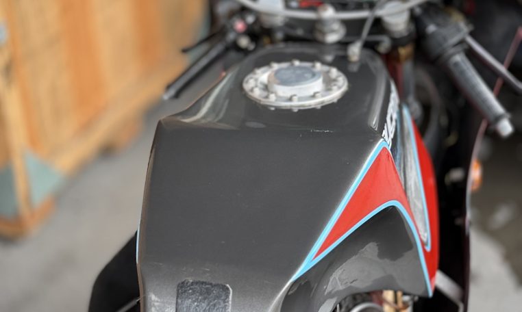 Kick-start only. Aftermarket seat and weathered customs paint. Starts easily and runs / rides well – good power / suspension / brakes. Instruments are weathered and inoperable and while it has a great look, it’s fair to say it could use some tidying up. Enjoy it as it is or great starting point for your own bevel-drive build.