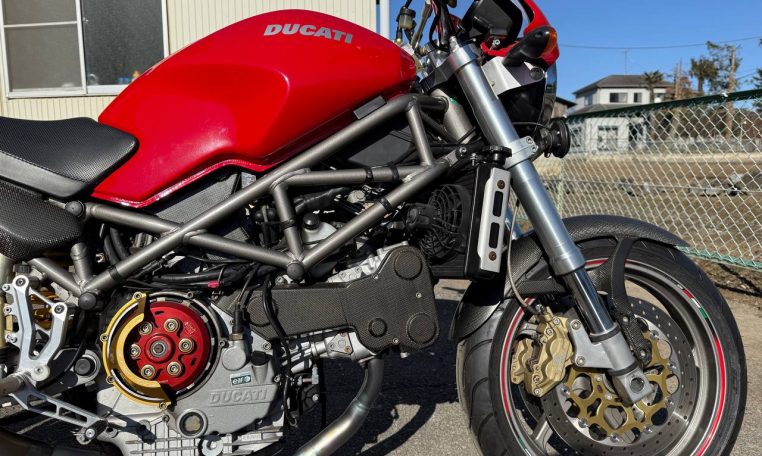 The original performance Ducati Monster.The S4 is powered by a slightly detuned version of the 916 Desmoquattro and equipped with high-specification components – Marchesini Wheels; Brembo brakes; and adjustable Showa 43mm forks & Sachs rear chock. As well as carbon-fiber fenders & cambelt-covers.