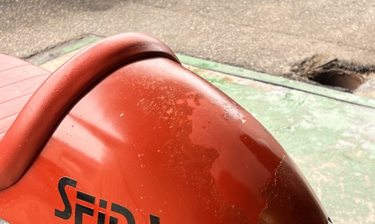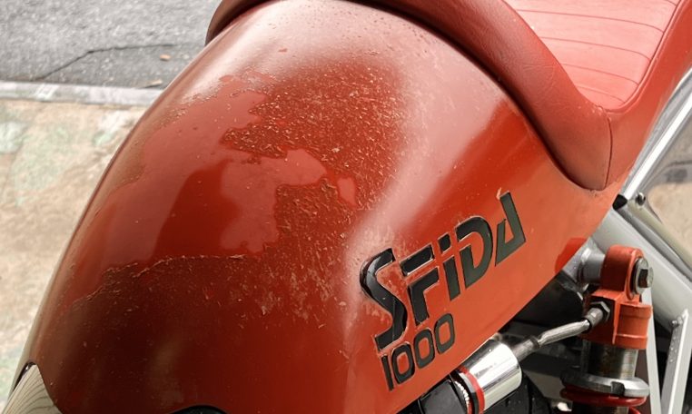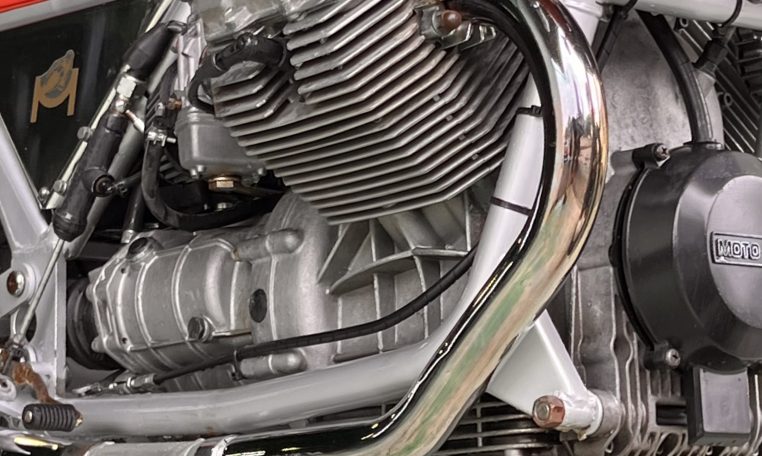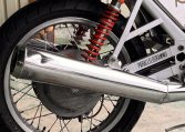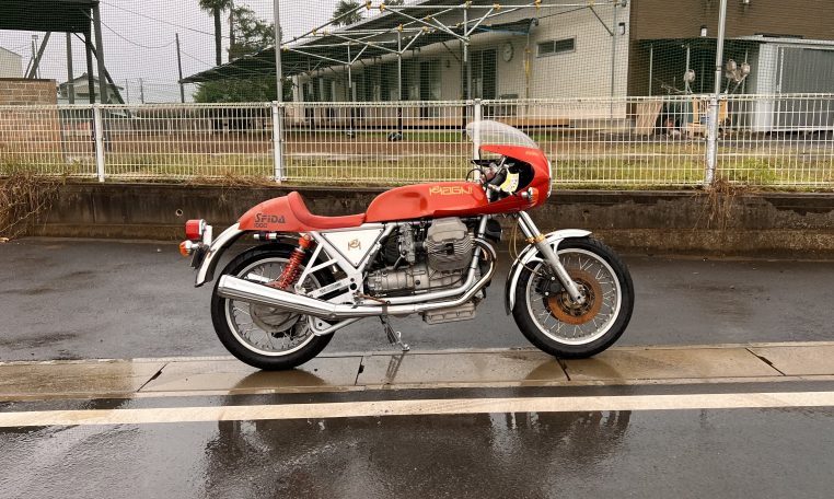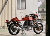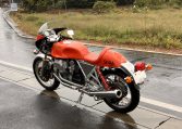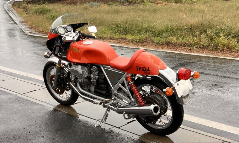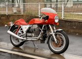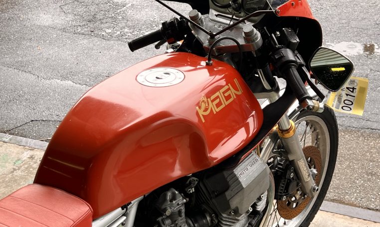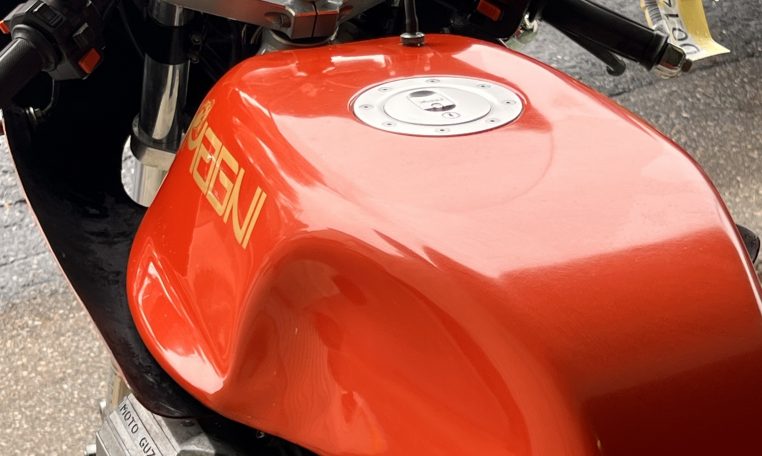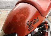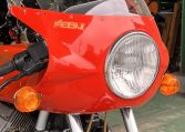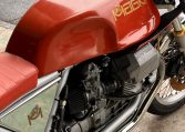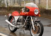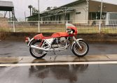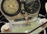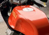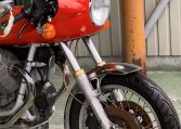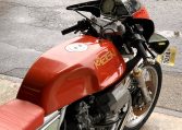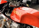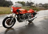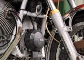 The Magni Sfida 1000 is a very high quality machine built in limited numbers from 1989 to early 1990’s – approx. 50 built. Components include Forcelle Italia forks; Brembo brakes; aluminum fuel tank; 1/2 fairing and bump-stop seat. Powered by the classic Moto Guzzi Lemans 1000 2v engine. Chassis features the innovative ‘Paralellogrammo’ rear suspension to mitigate drive-shaft torque.