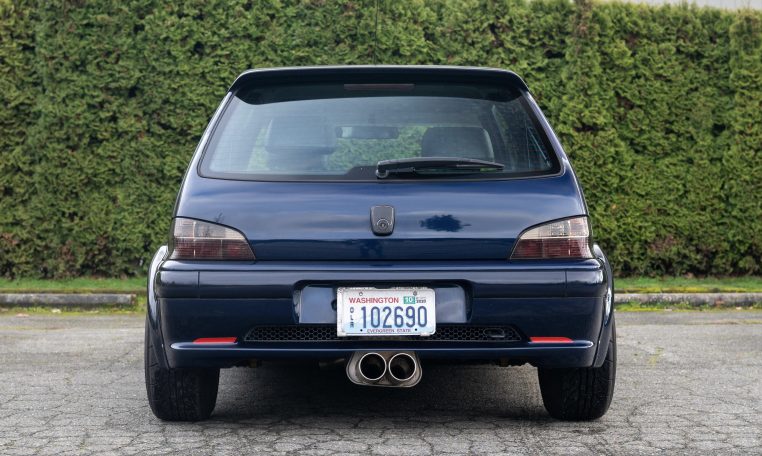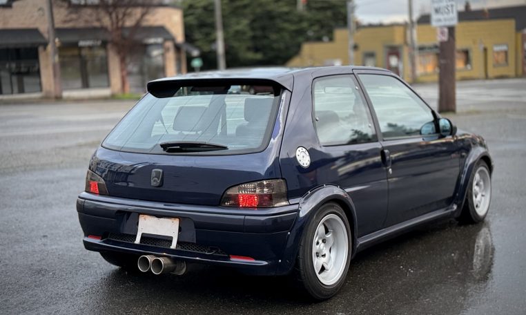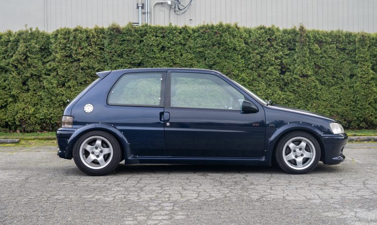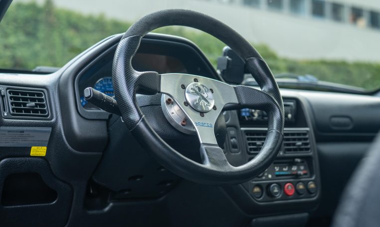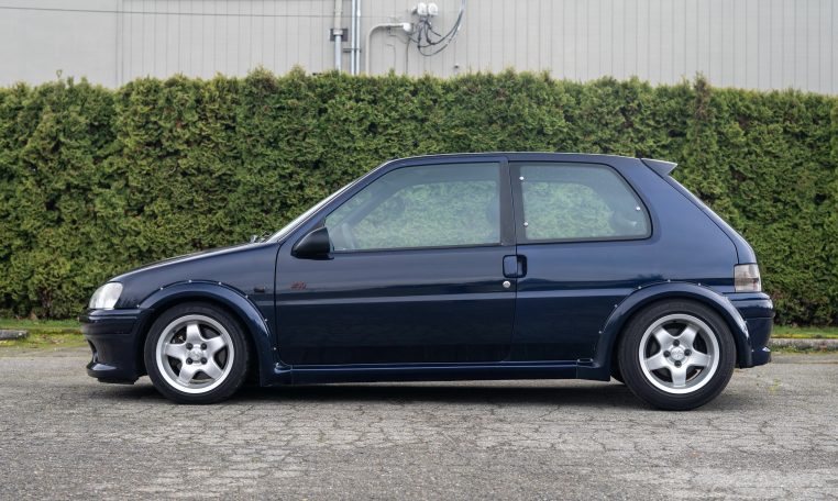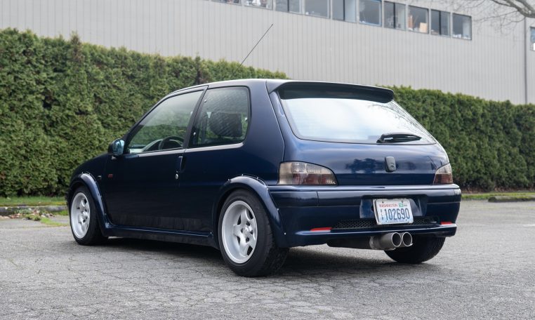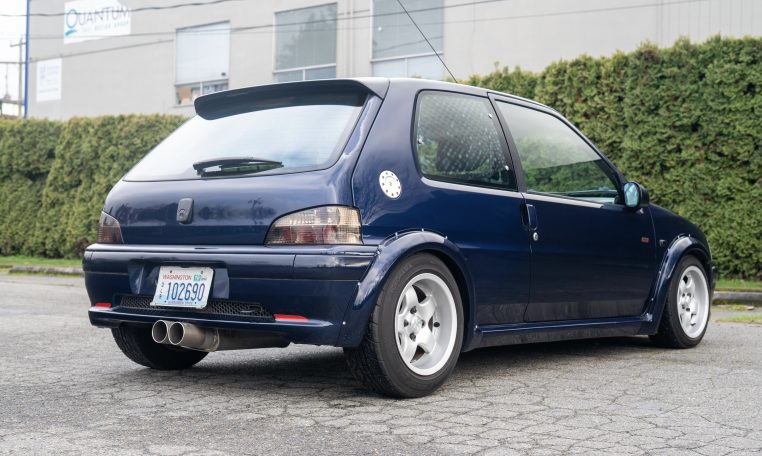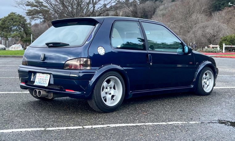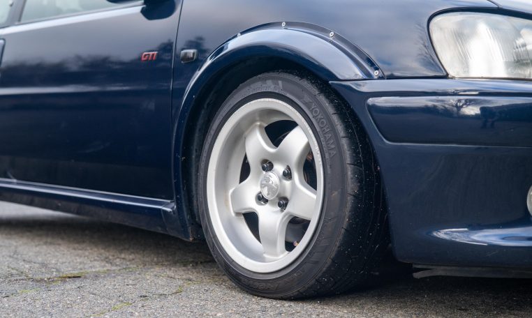 Neat car with some nice performance modifications. Fender flares / bumpers / spoiler (possibly Maxi N1); Steffan/BCW deep-dish wheels; header with Remus muffler; short-shifter; PeugeotSport tachometer; Koni shock absorbers.