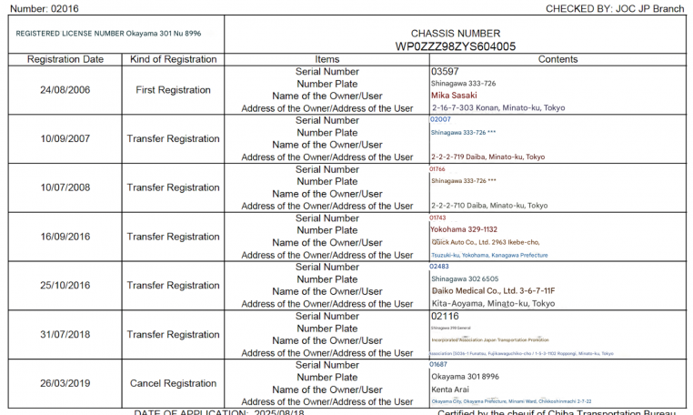 VIN: WP0ZZZ98ZYS604005