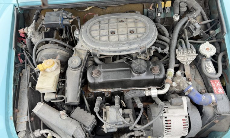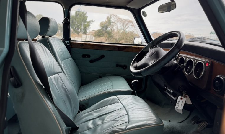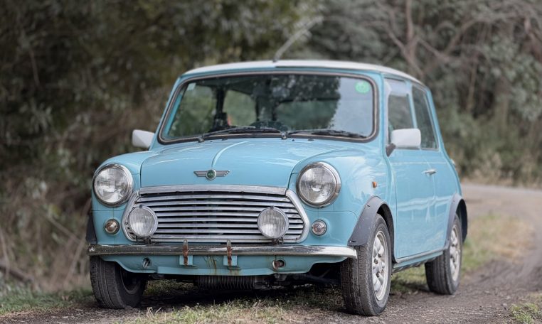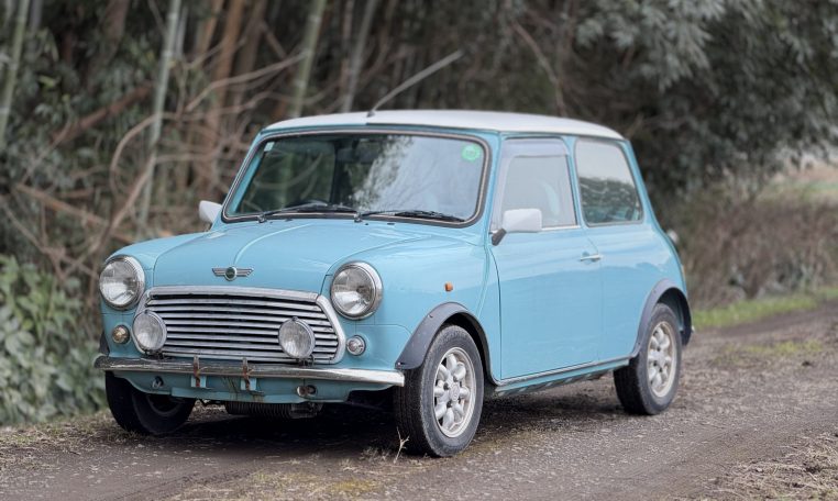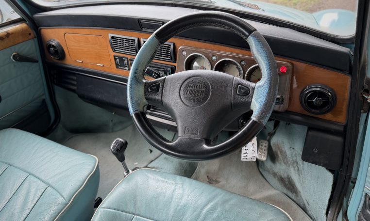 This late Rover Mini Cooper features include fuel injection and air conditioning with striking Hawaiian Blue paint and light blue leather interior. Mileage shows ~43k kilometers, but as this is a 100k odometer, is not known to be accurate.